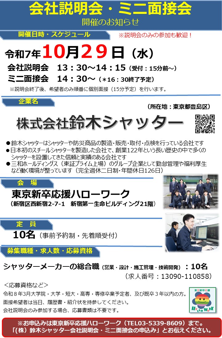 - 株式会社鈴木シャッター会社説明会・ミニ面接会のお知らせ