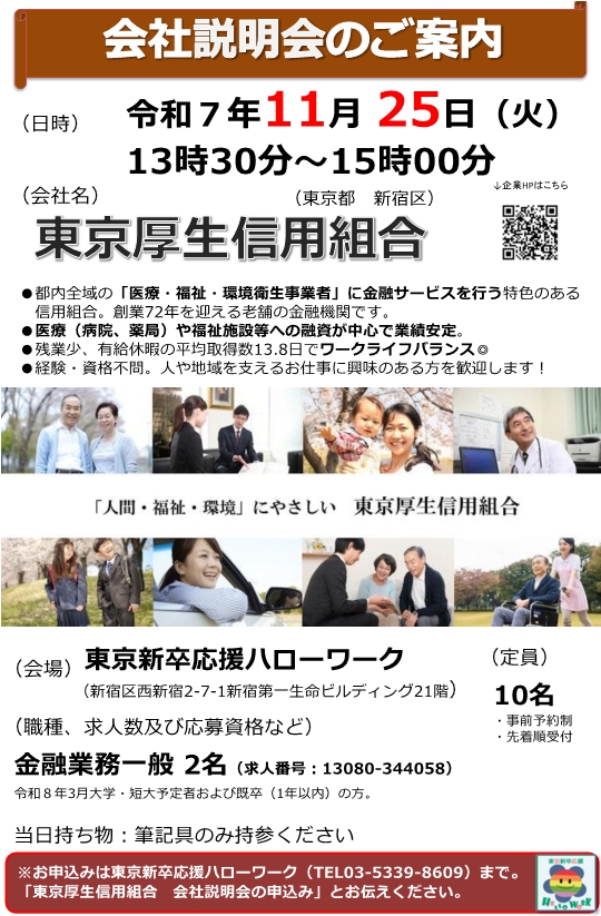 - 東京新卒応援ハローワーク(新宿区西新宿2-7-1 新宿第一生命ビルディング21階)
