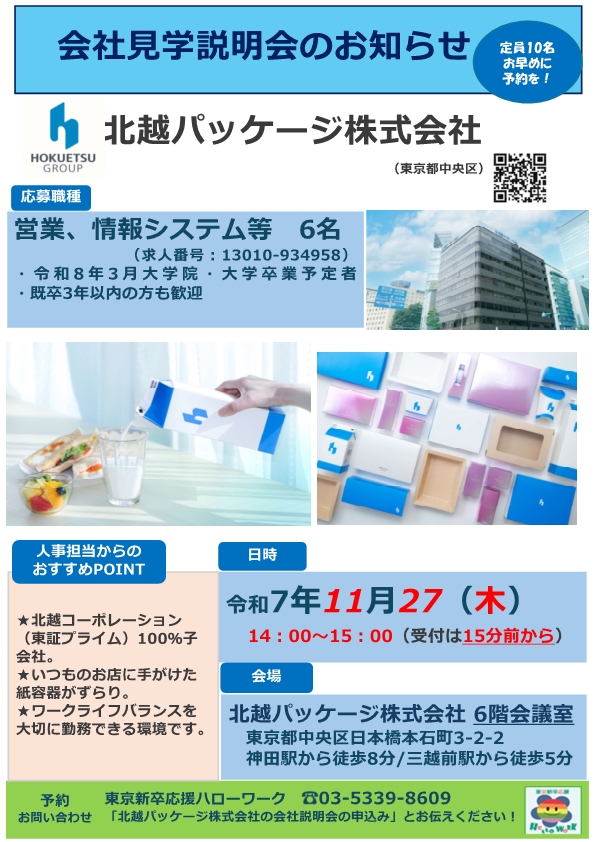 - 北越パッケージ株式会社会社見学説明会のお知らせ