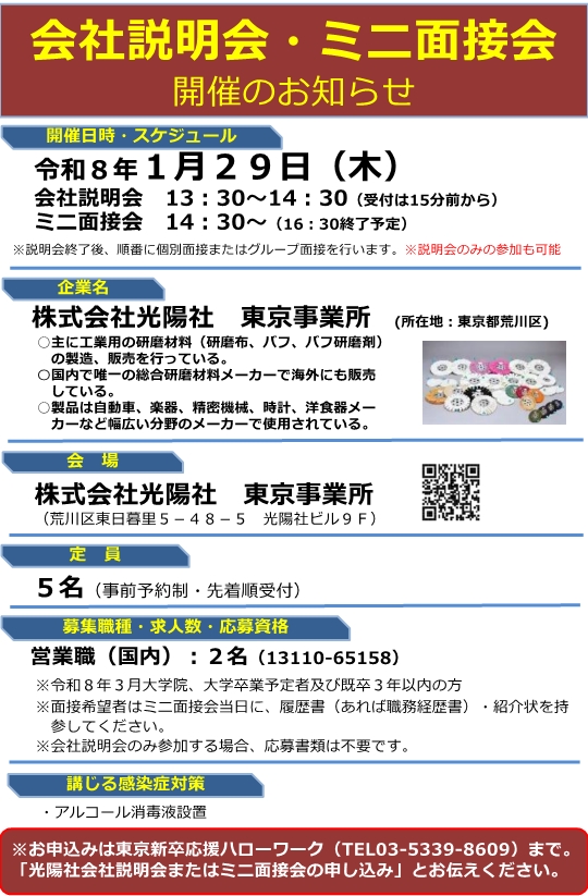 - 株式会社光陽社 東京事業所 会社説明会・ミニ面接会のお知らせ