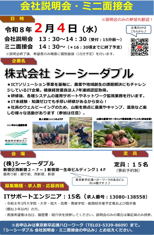 - 株式会社シーシーダブル 会社説明会・ミニ面接会のお知らせ
