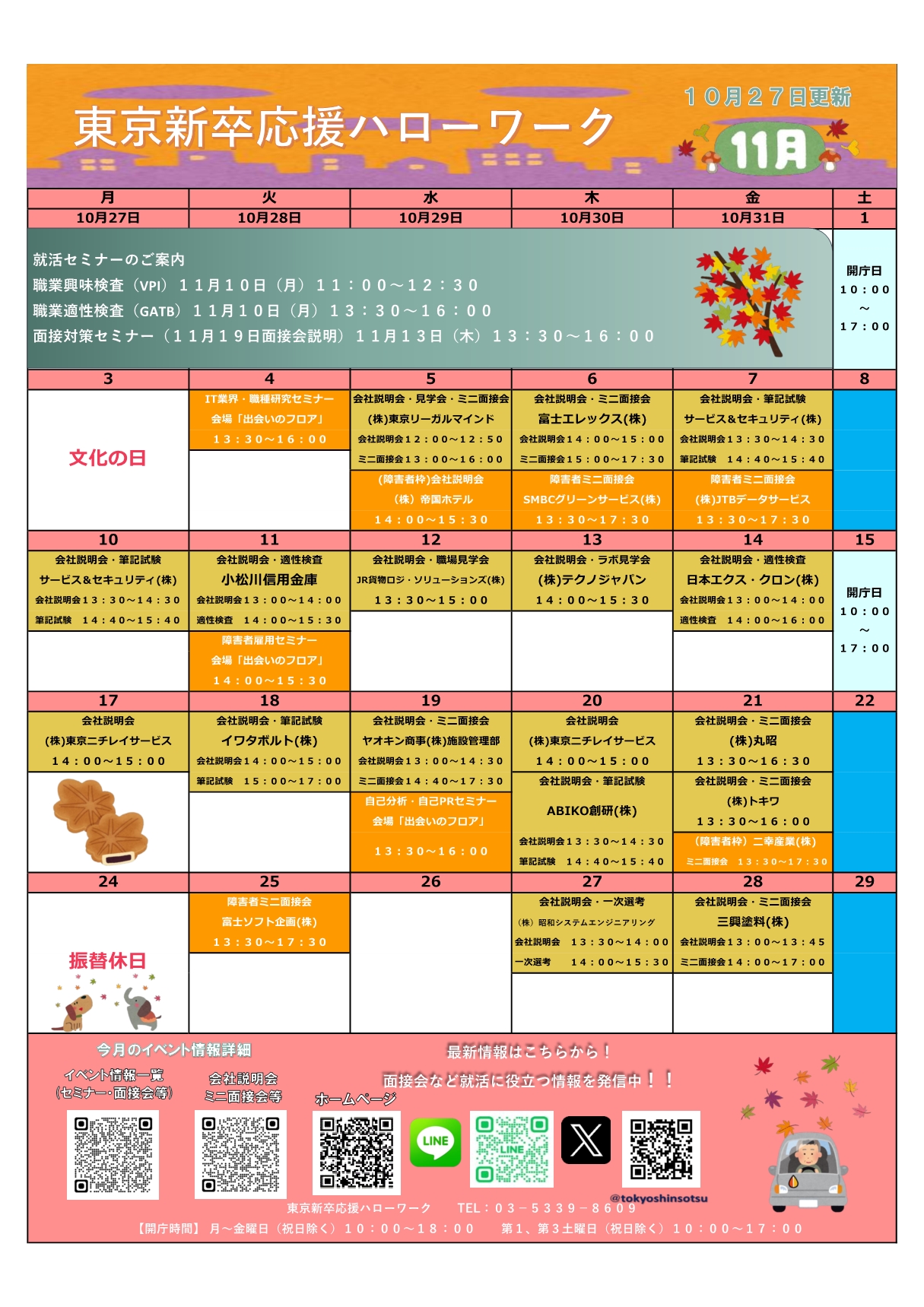 イベントの詳細については下記リンク先のページをご確認いただくか、各担当部門にお問い合わせください。