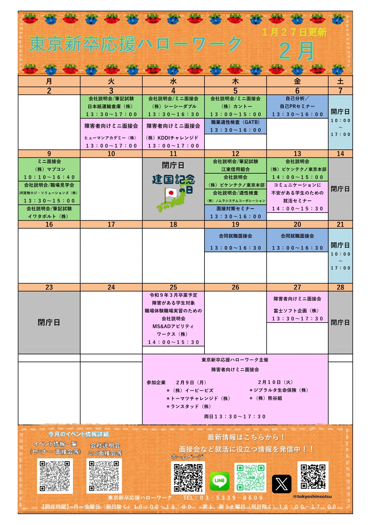 - 東京新卒応援ハローワーク イベントカレンダー
