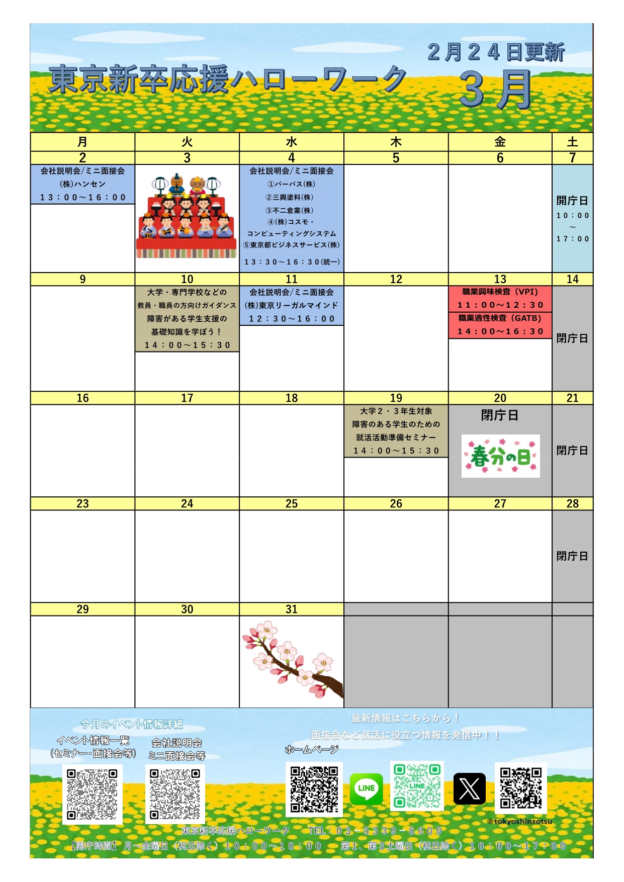 イベントカレンダー(3月)のダウンロード東京新卒応援ハローワークTOPへ