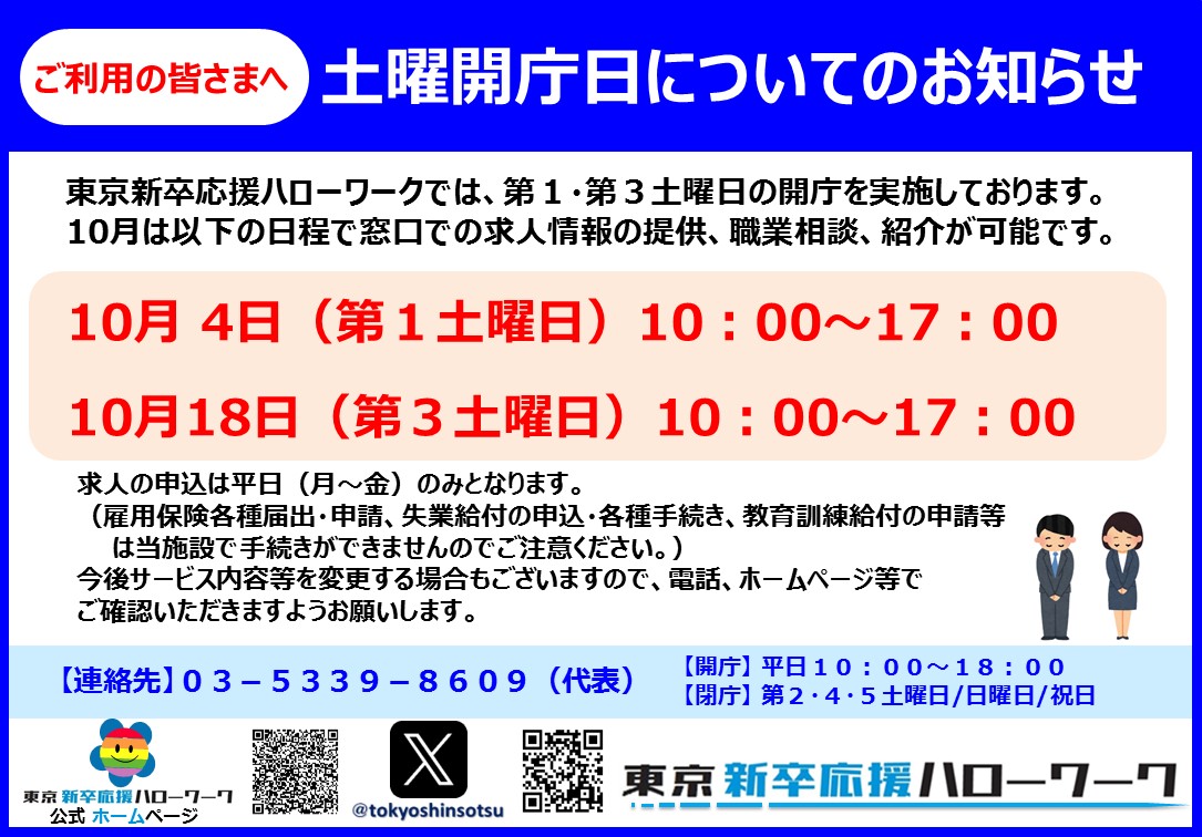 - 東京新卒応援ハローワークの土曜開庁日について