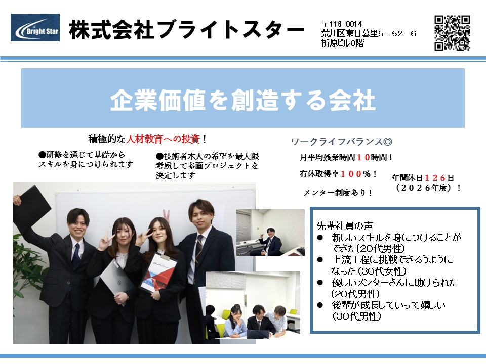 ■株式会社ブライトスター|エンジニア/契約社員※経験者|13110-4387461