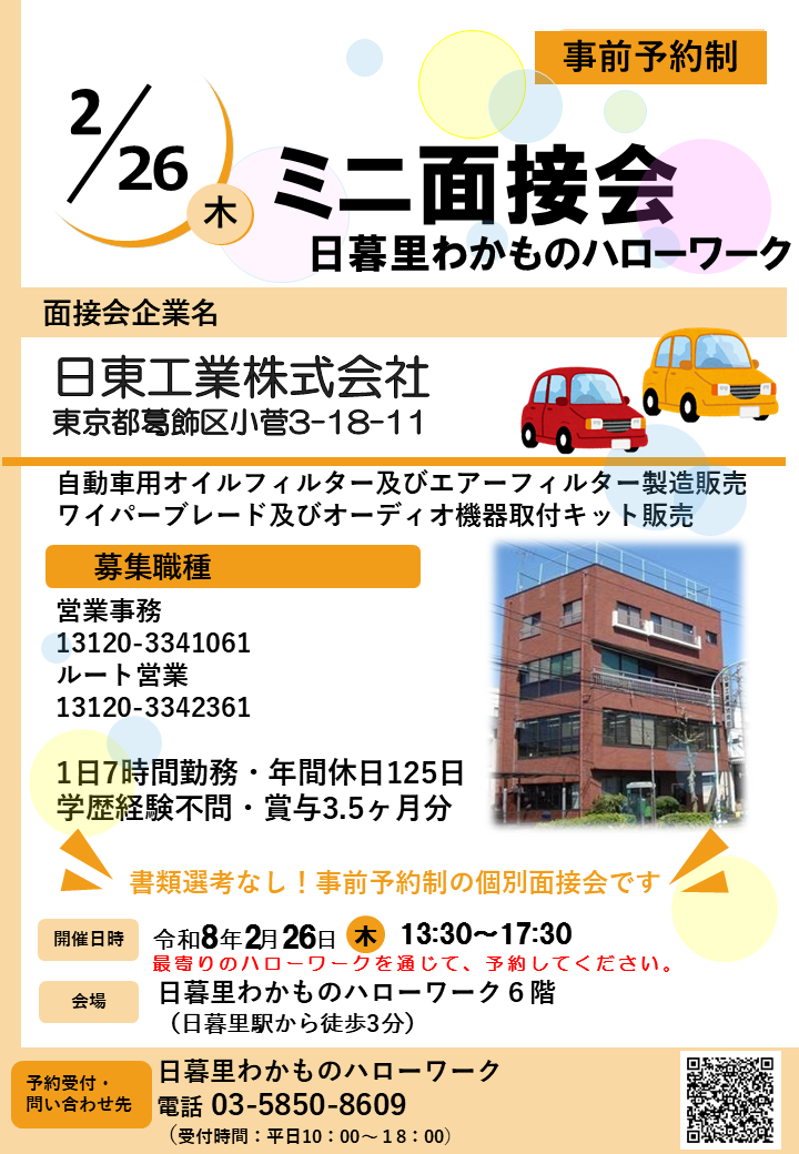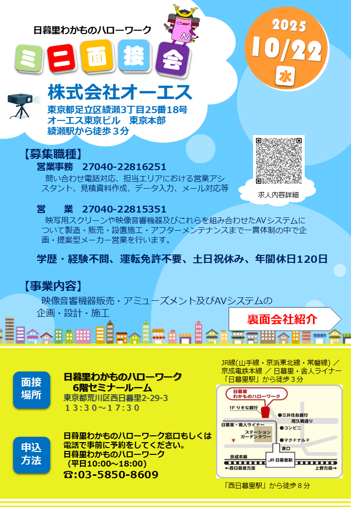 - 日暮里わかものハローワーク 6階セミナールーム(荒川区西日暮里2-29-3日清ビル6階) 日暮里駅より徒歩3分