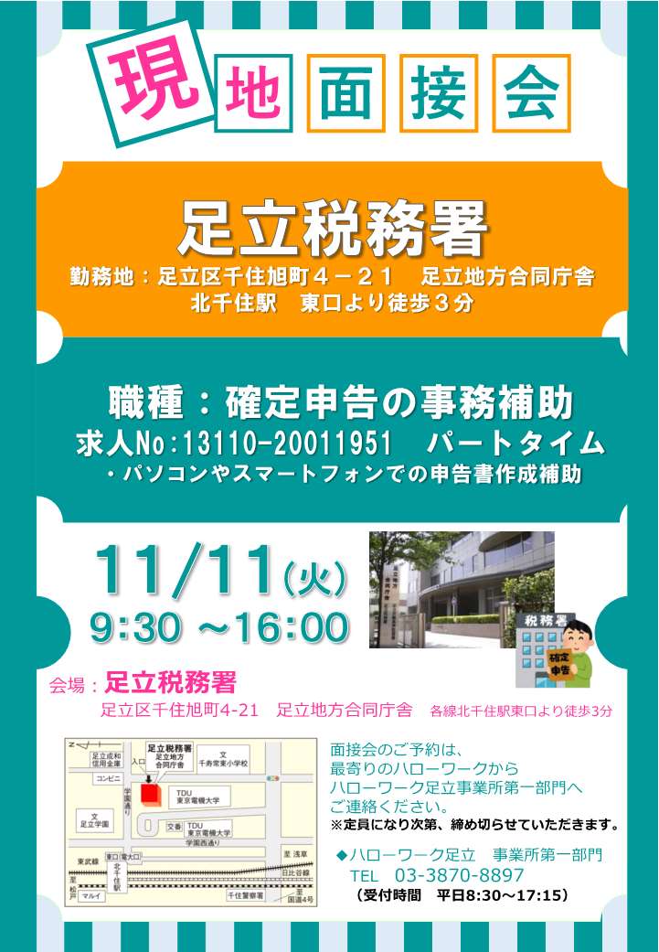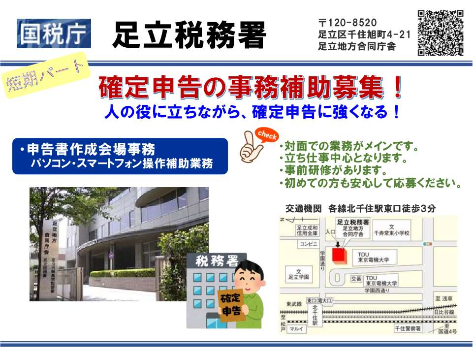 - 足立税務署(足立区千住旭町4-21 足立地方合同庁舎)各線北千住駅東口より徒歩3分