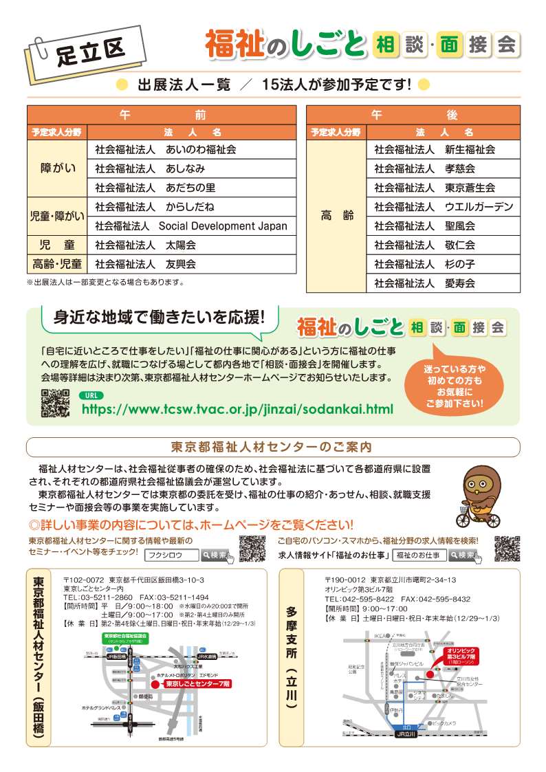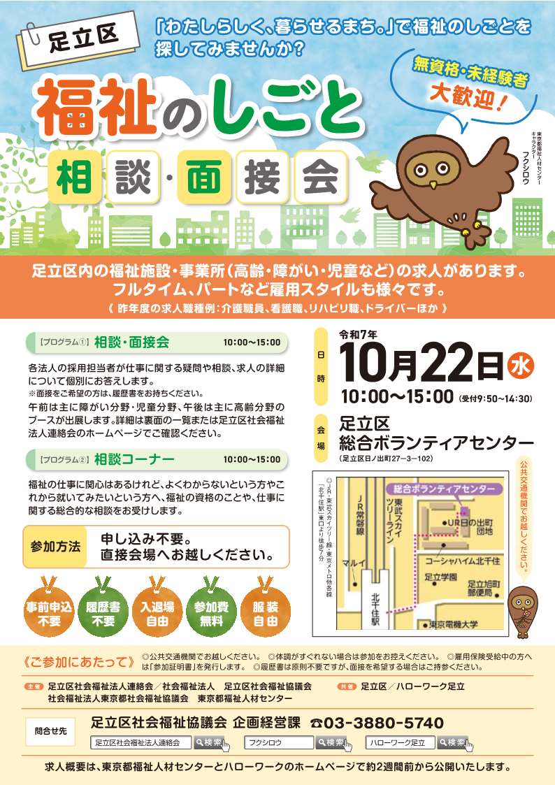 足立区内の福祉施設・事業所(高齢・障がい・児童など)の求人があります。