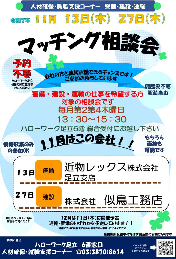 警備・建設・運輸の仕事を希望する方対象の相談会です(毎月第2第4木曜日)