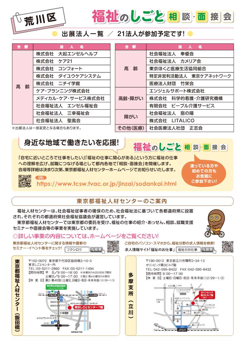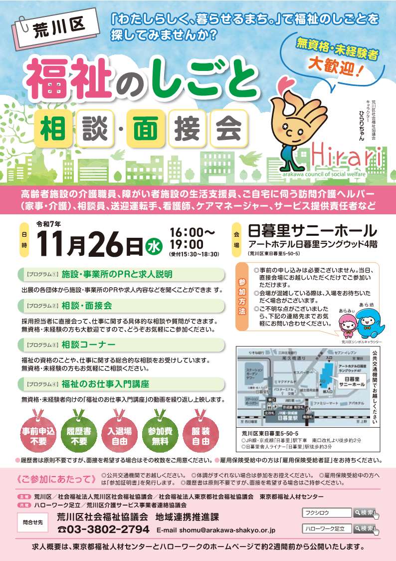 荒川区 福祉のしごと相談・面接会