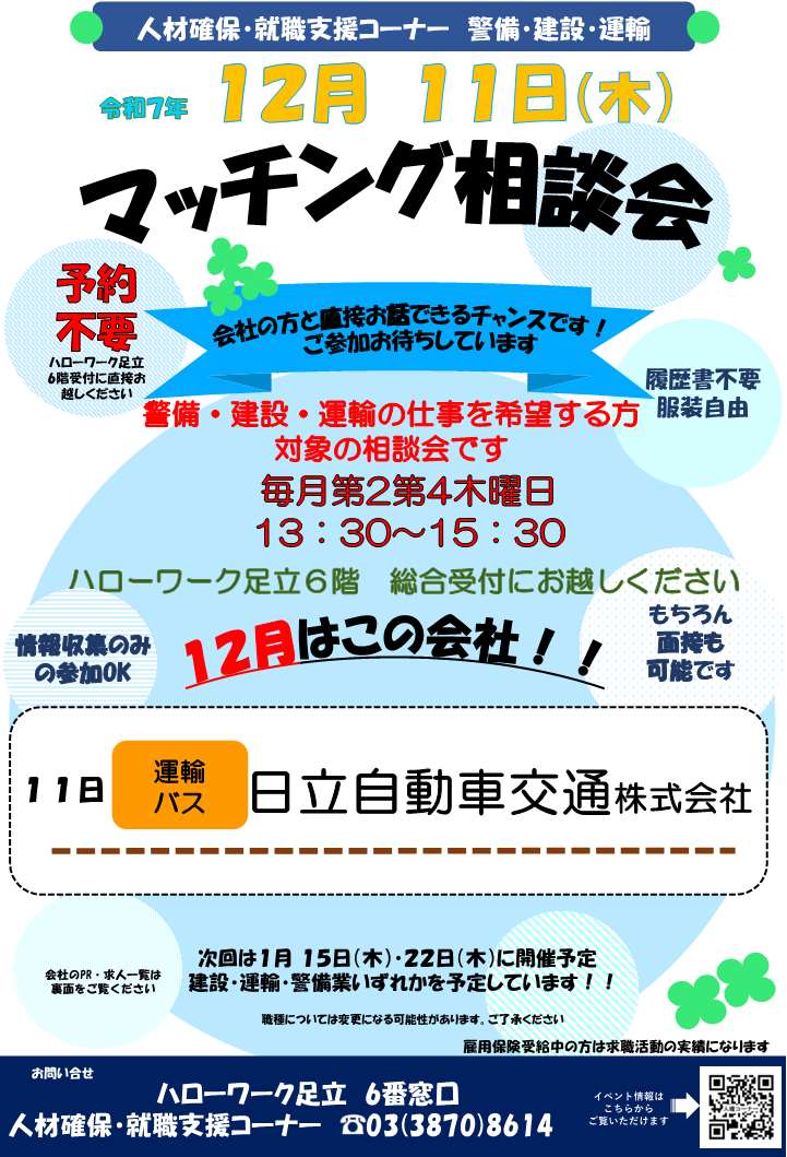 警備・建設・運輸の仕事を希望する方対象の相談会です(毎月第2第4木曜日)