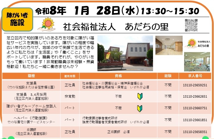 1月28日(水) 社会福祉法人あだちの里【障がい者施設】