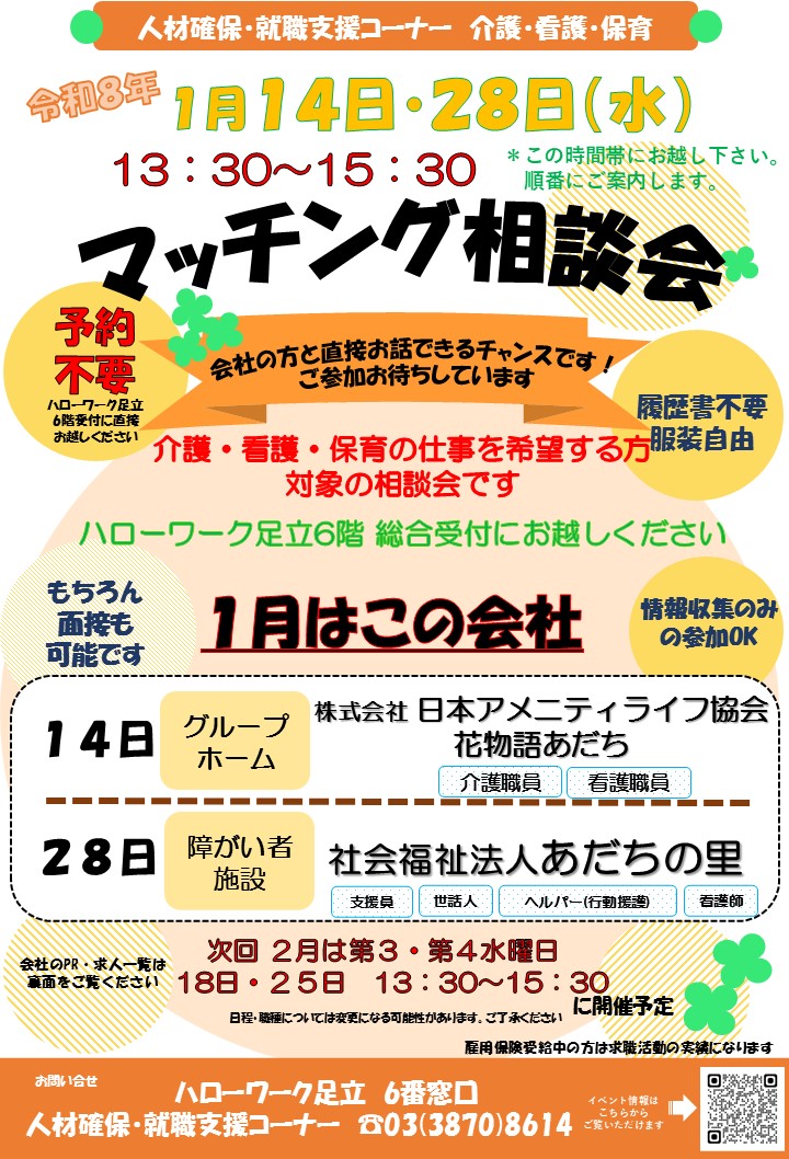 - 不要:ハローワーク足立6階 総合受付にお越しください