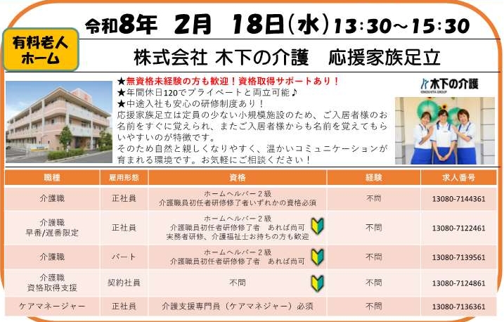 2月18日(水) 株式会社 木下の介護 応援家族足立【有料老人ホーム】
