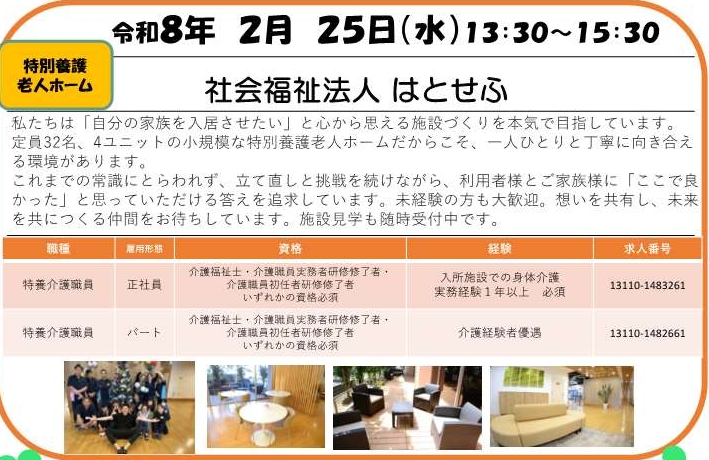 2月25日(水) 社会福祉法人 はとせふ【特別養護老人ホーム】