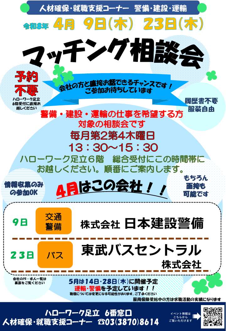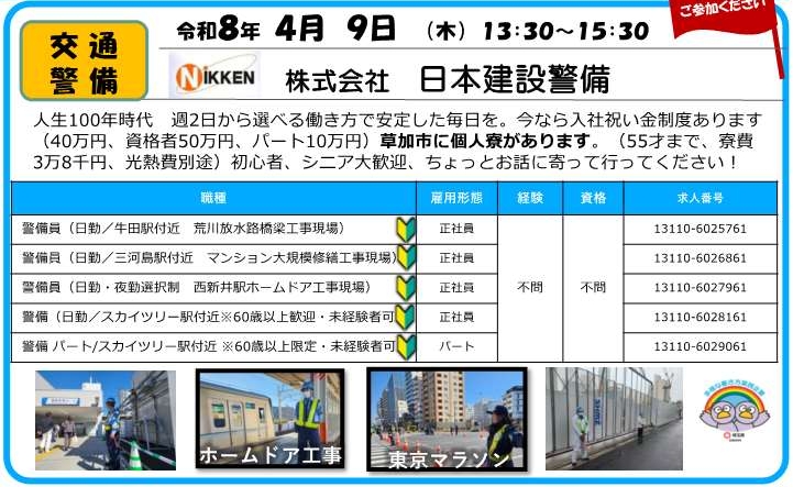 警備・建設・運輸の仕事を希望する方対象の相談会です(毎月第2第4木曜日)
