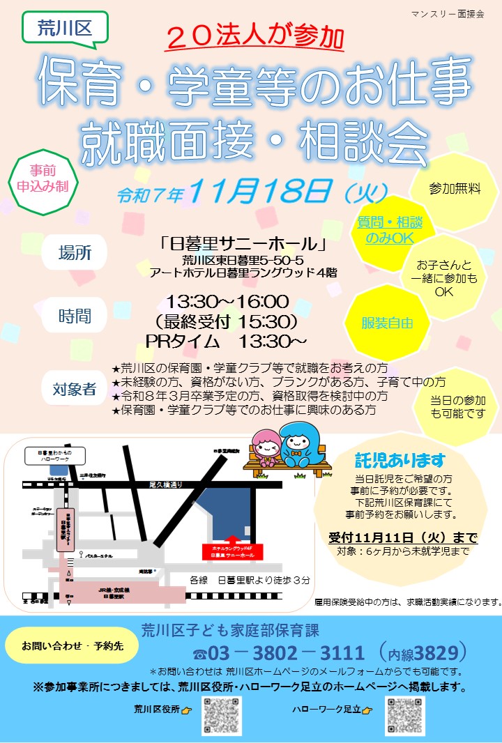 荒川区 保育・学童等のお仕事 就職面接・相談会