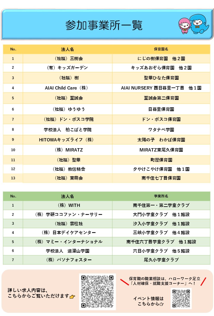 荒川区内に保育園・学童クラブ等の施設を運営する20法人が参加します。