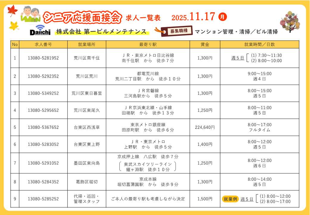 シニア応援面接会(株式会社第一ビルメンテナンス)