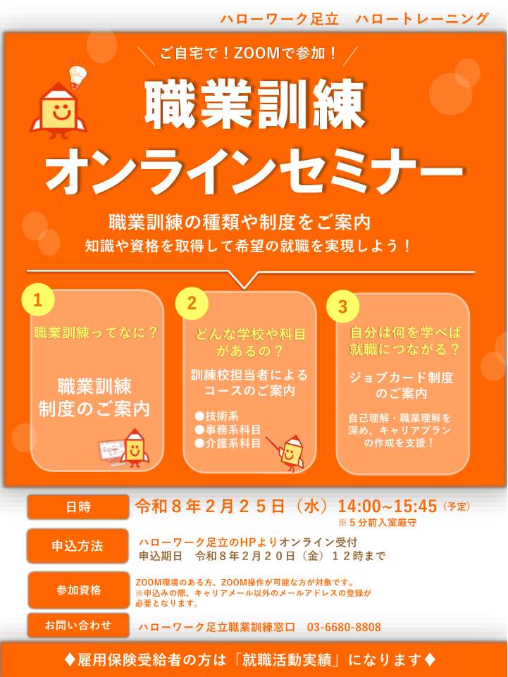 ご自宅で!ZOOMで参加! 職業訓練オンラインセミナー