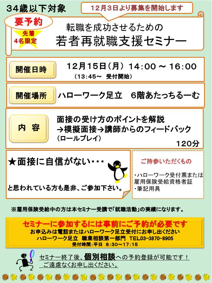 34歳以下対象 転職を成功させるための若者再就職支援セミナー