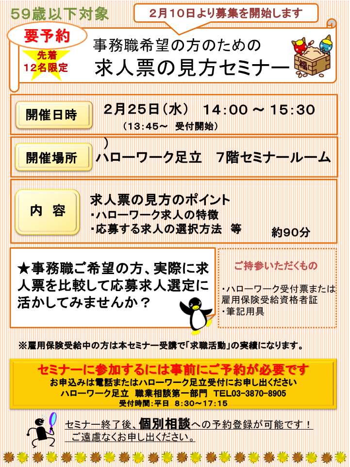 59歳以下対象 事務職希望の方のための求人票の見方セミナー