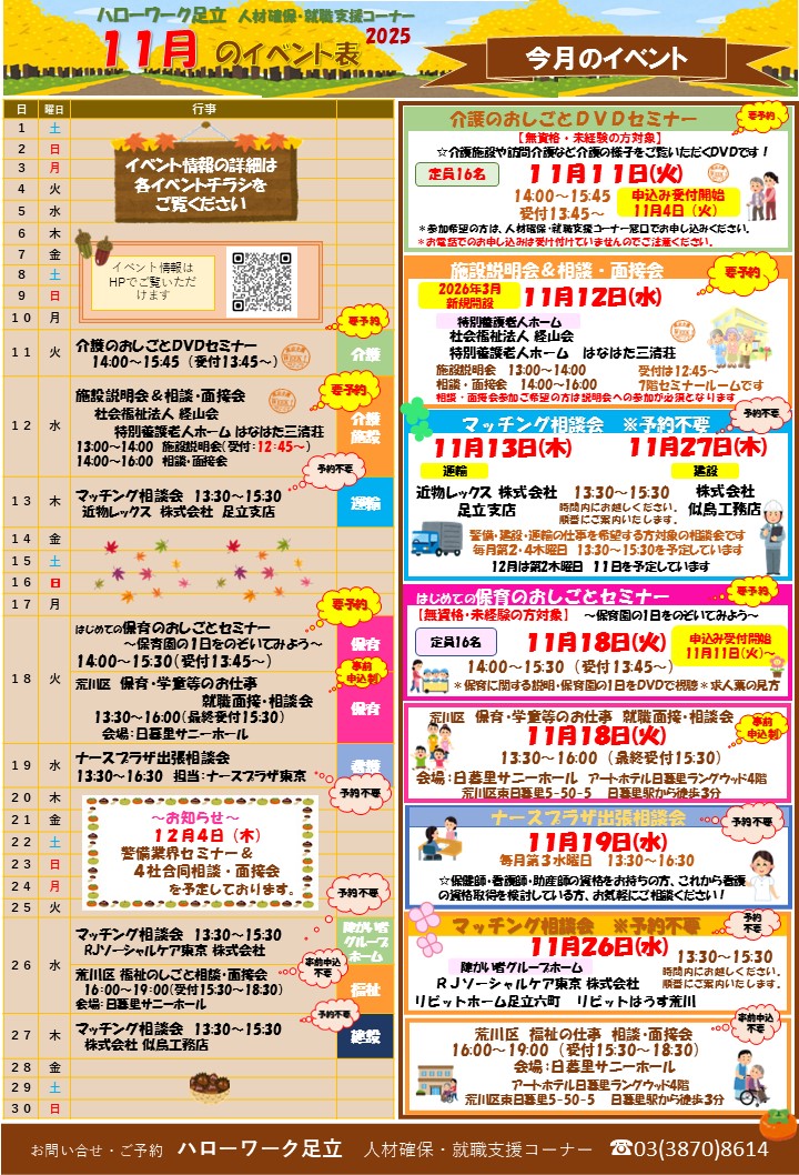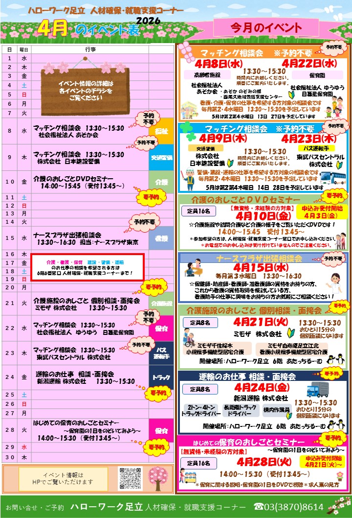 イベントカレンダー、就職面接会、セミナーの開催等の各種情報については、随時HPにアップします!