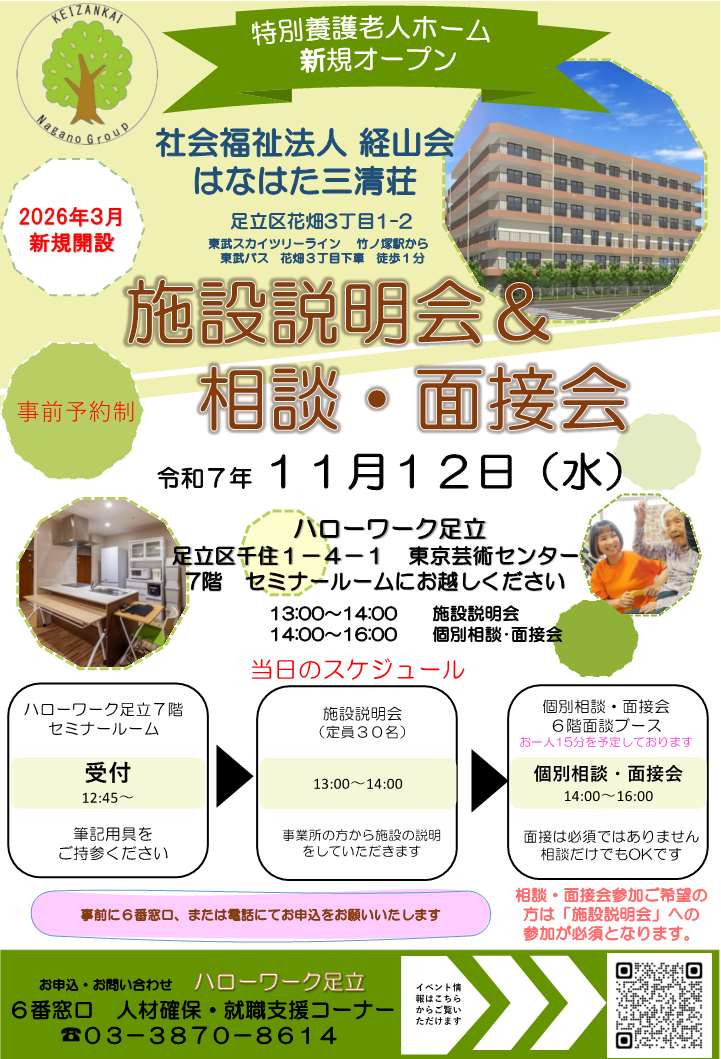 - 令和7年11月12日(水)|13:00~14:00(施設説明会)/14:00~16:00(個別相談・面接会)