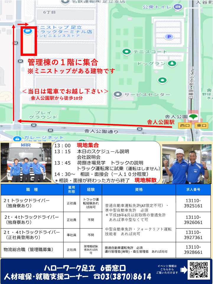 - 東京都足立区入谷6-1-1 足立トラックターミナル管理棟