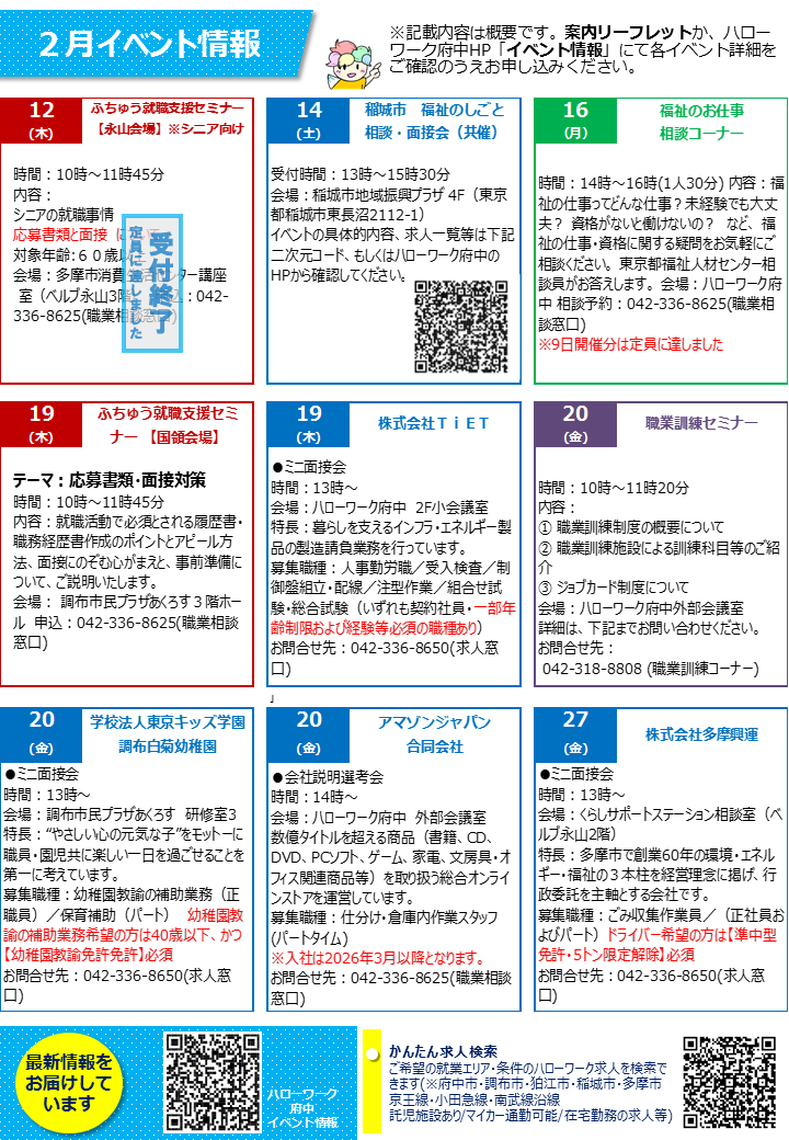 2月イベント情報[ハローワーク府中]