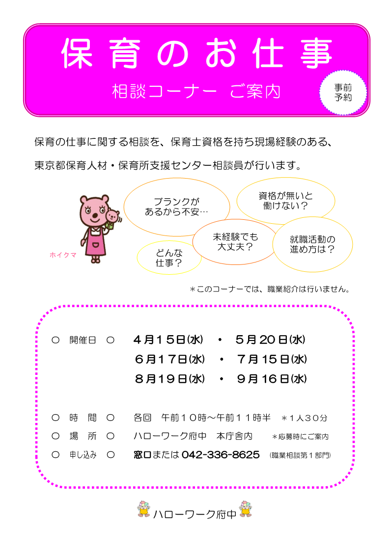 - 予約TEL:042‐336-8625(職業相談第一部門)