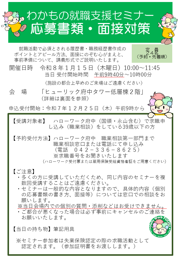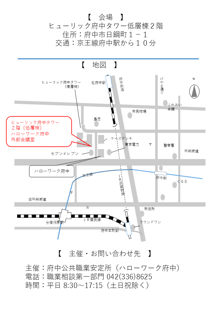 ハローワーク府中職業相談窓口に来所又は電話申し込み
