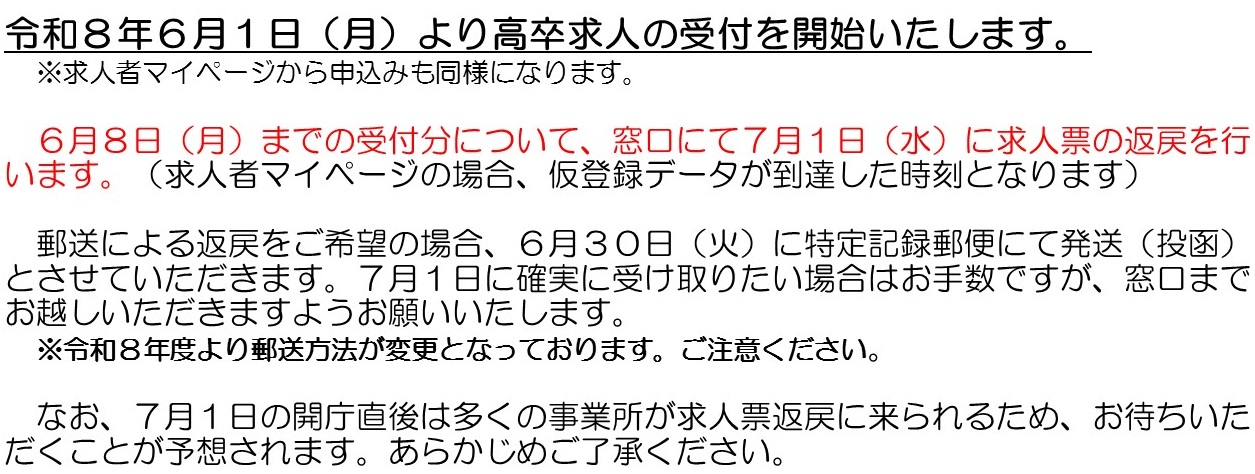 【令和8年度 高等学校等卒業予定者の求人申込みについて】
