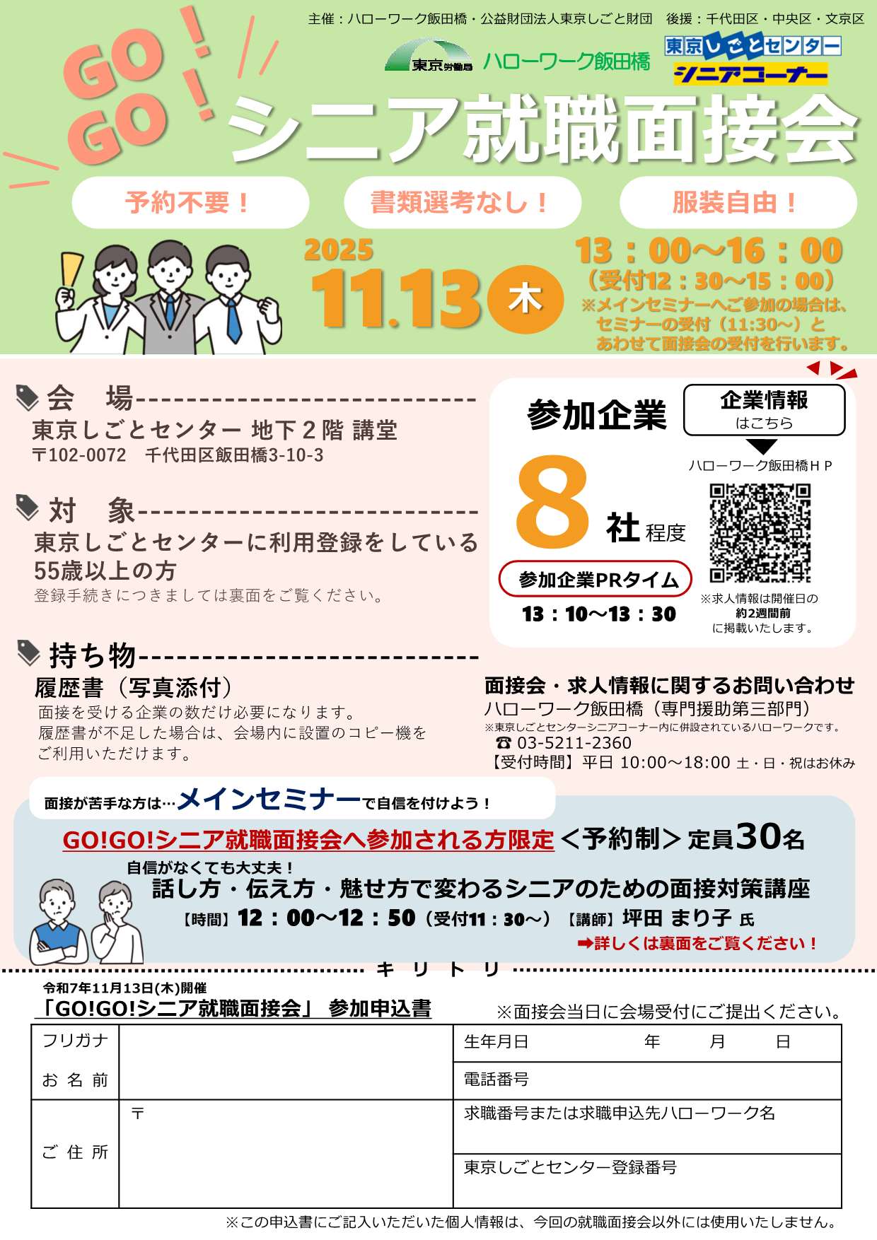 ハローワーク飯田橋 > イベント > GO!GO!シニア就職面接会開催