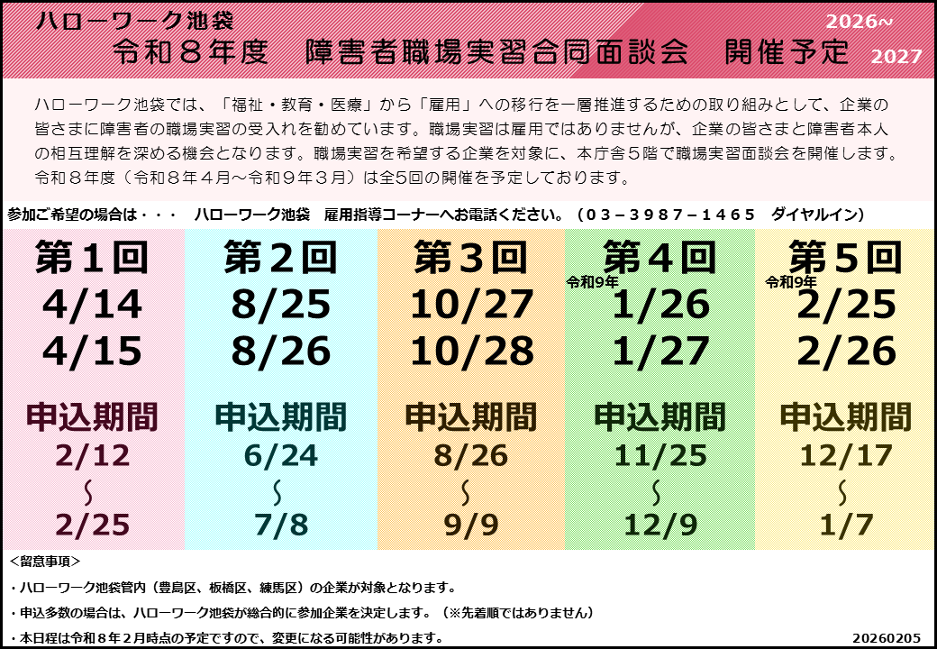 ◇令和8年度 職場実習合同面談会のご案内