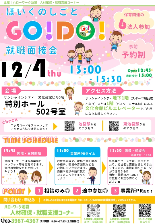 12/4(木)開催 保育のしごと GO!DO! 就職面接会