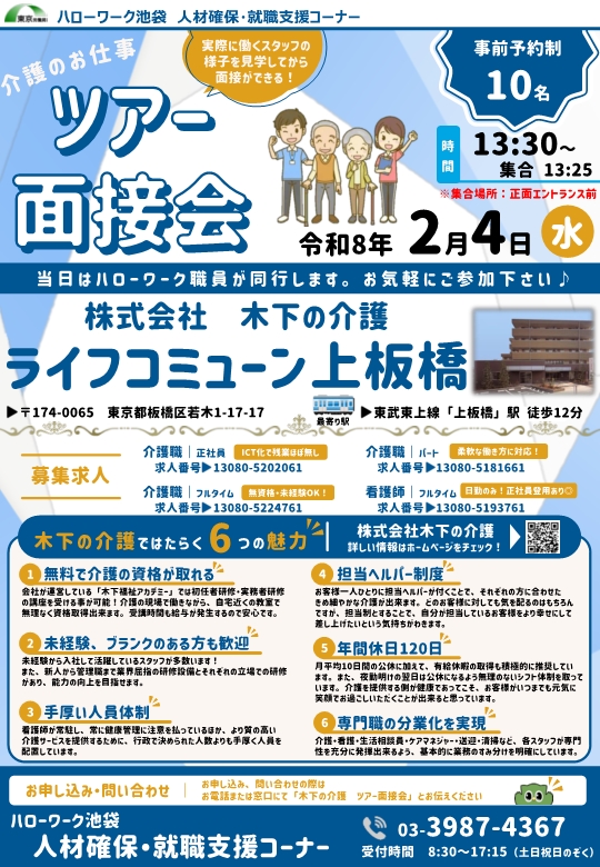令和8年2月4日(水)、『株式会社木下の介護 ライフコミューン上板橋 ツアー面接会』を開催いたします。