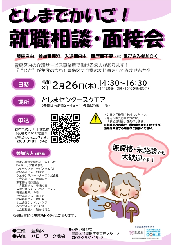 令和8年2月26日(木)の14:30より、『としまでかいご! 就職相談・面接会』が開催されます。