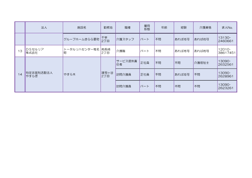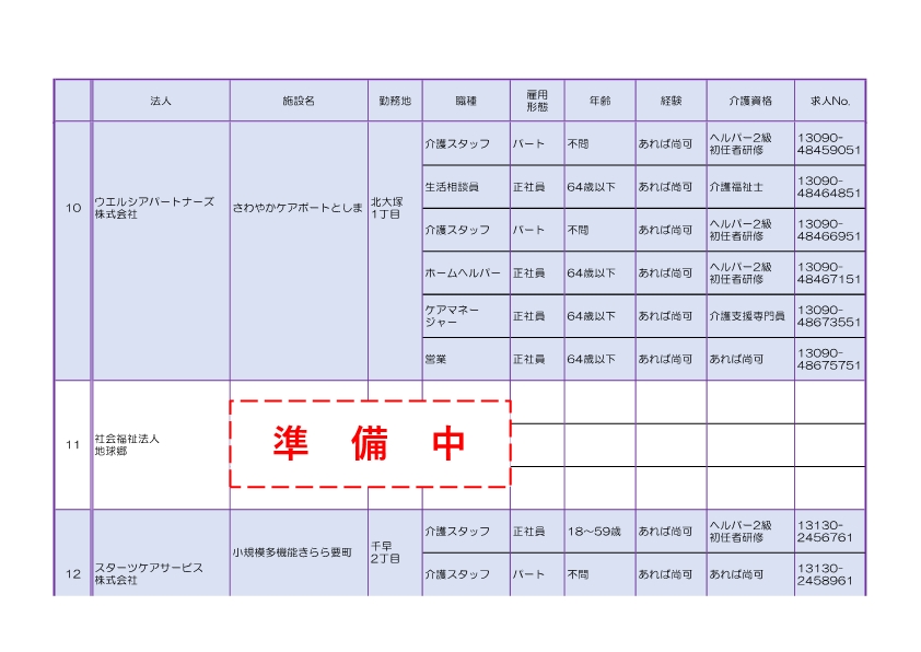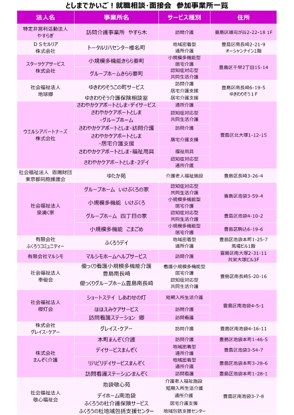 当日は豊島区内に施設を持つ介護関連の14法人が参加し、各法人のブースで採用担当者から直接採用面接や個別相談が受けられます。