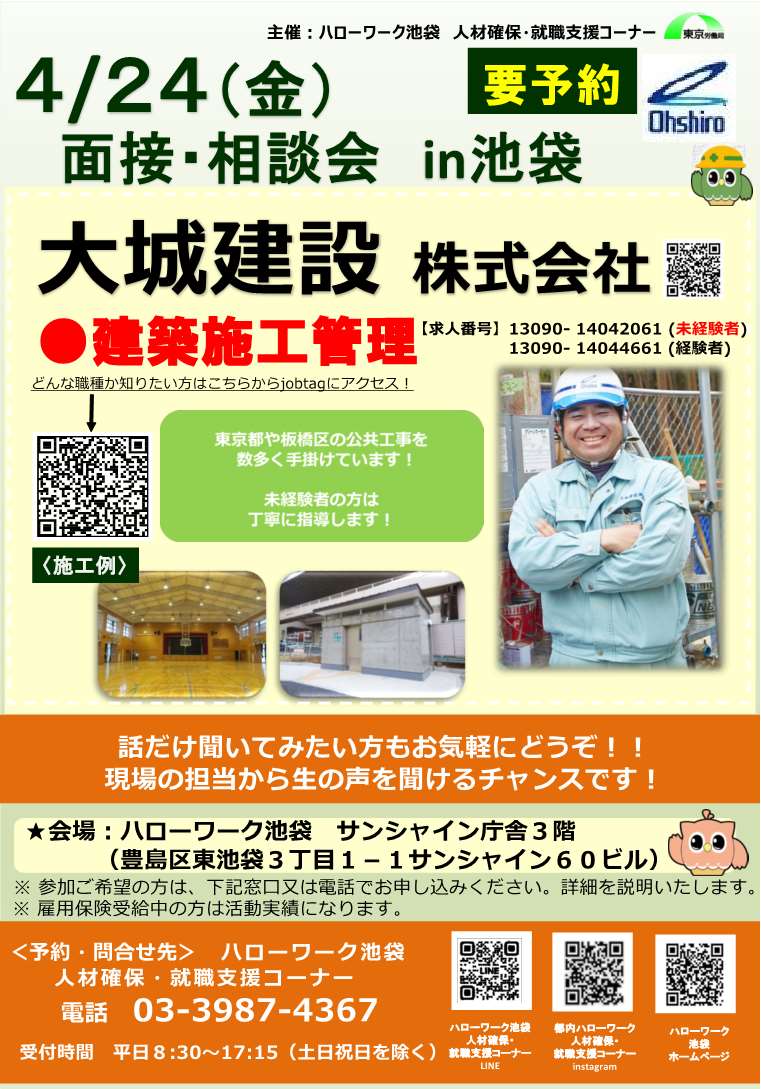 令和8年4月24日(金)に「大城建設 株式会社」の面接・相談会を開催します。