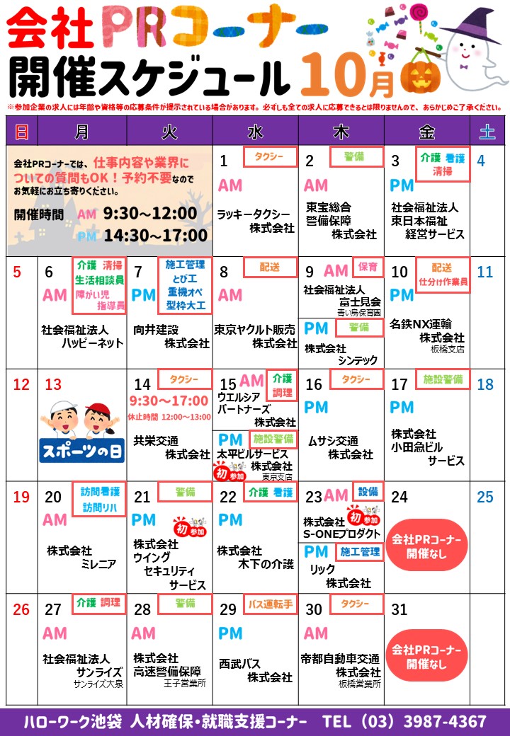 令和7年10月の会社PRコーナー開催スケジュールをご案内します。