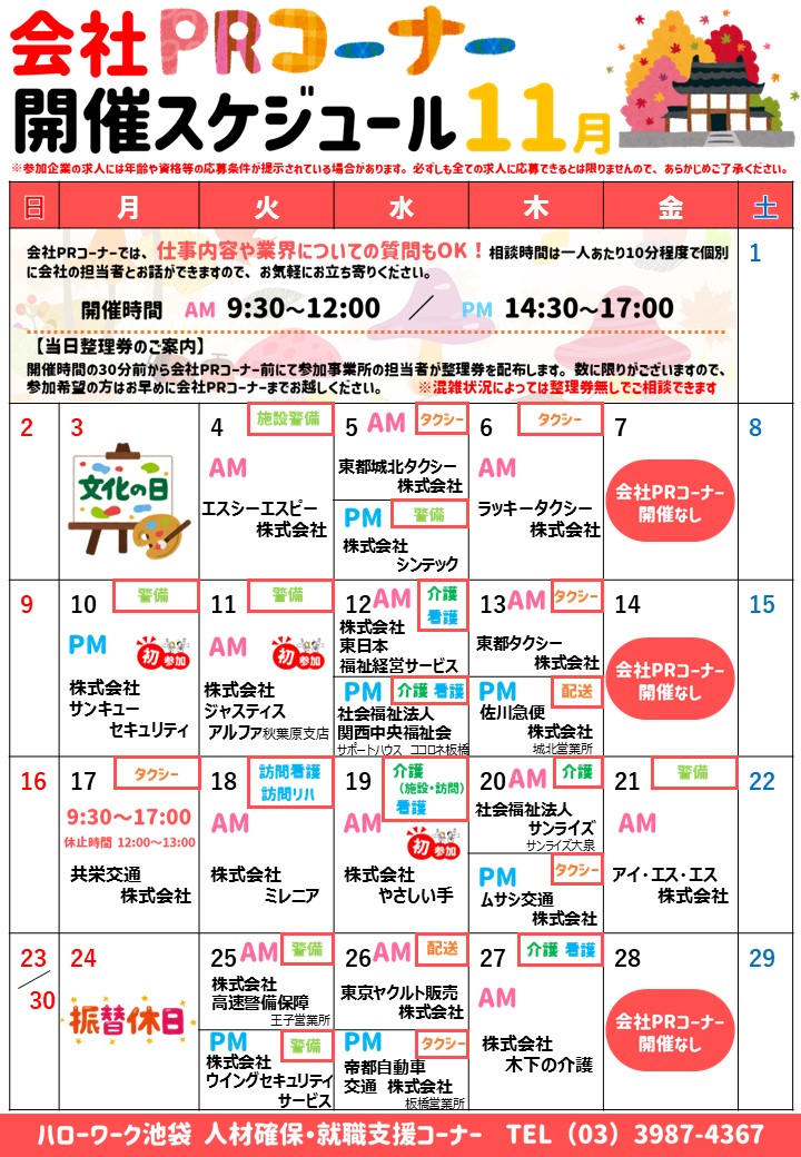 令和7年11月の会社PRコーナー開催スケジュールをご案内します。