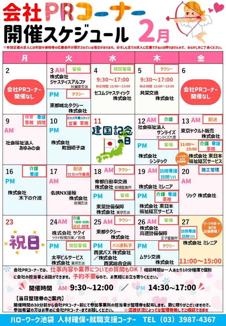 令和8年2月の会社PRコーナー開催スケジュールをご案内します。
