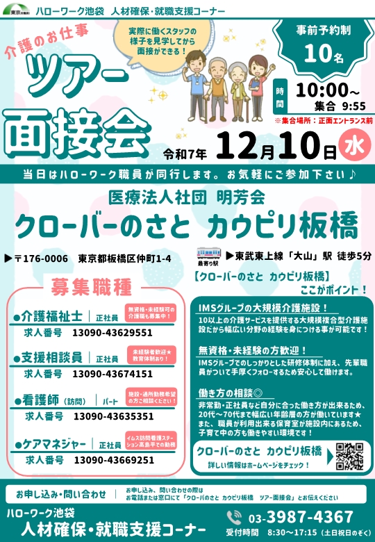 12/10(水)開催 医療法人社団明芳会 クローバーのさと ツアー面接会