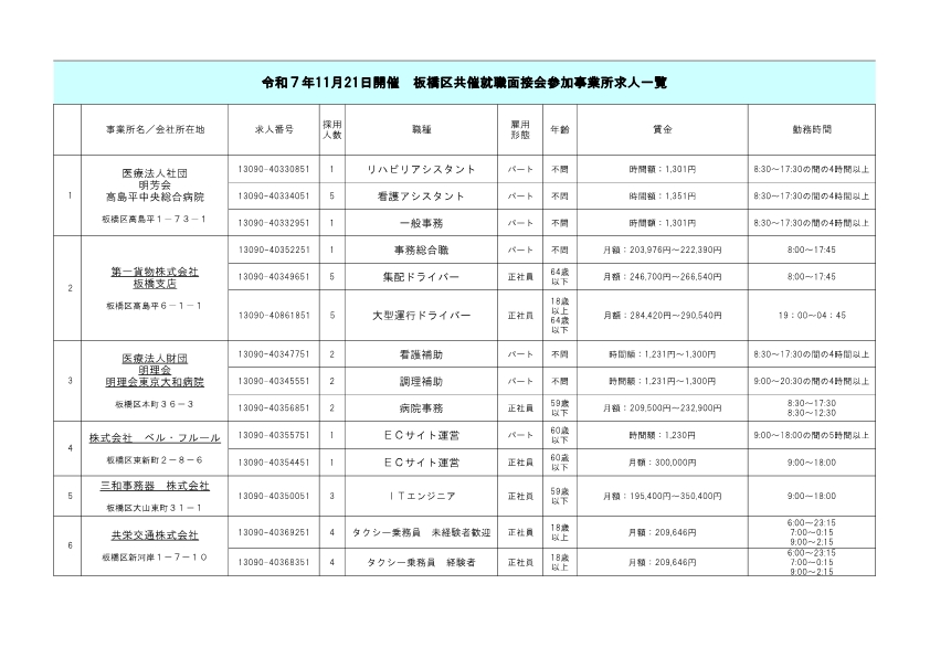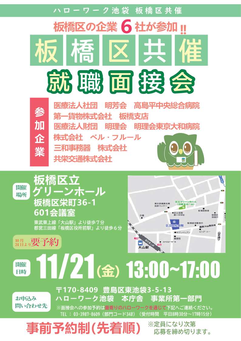 11月21日(金)板橋区共催就職面接会のお知らせ