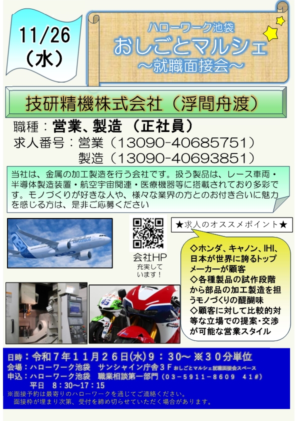 ハローワーク池袋 サンシャイン庁舎 3階 おしごとマルシェ就職面接会スペース