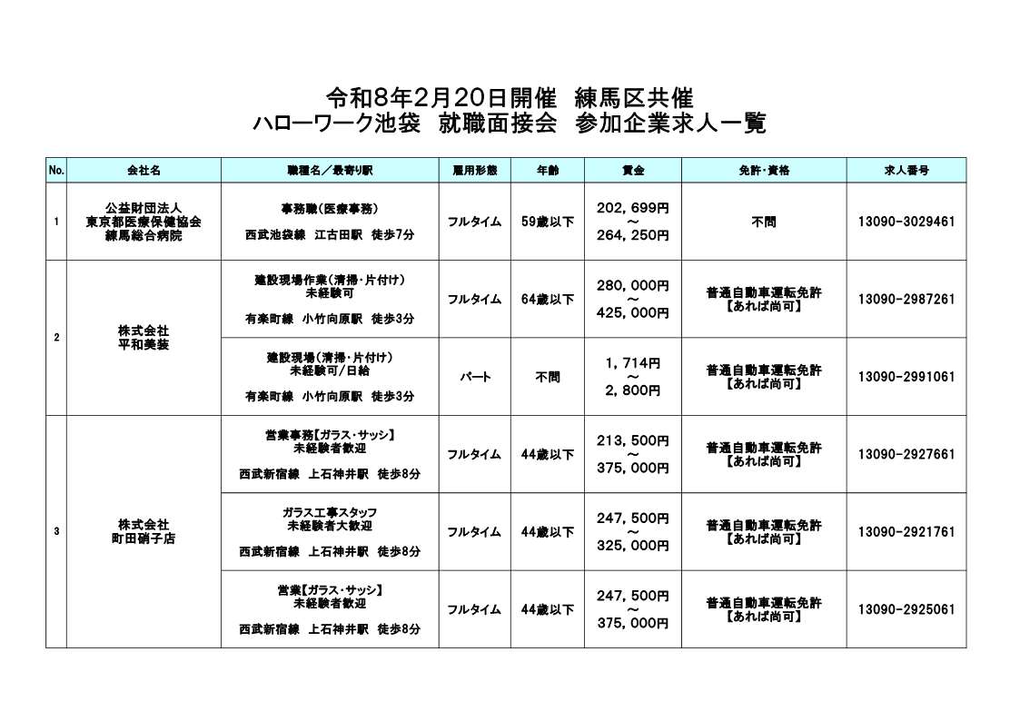ハローワーク池袋、練馬区共催の就職面接会を開催します。