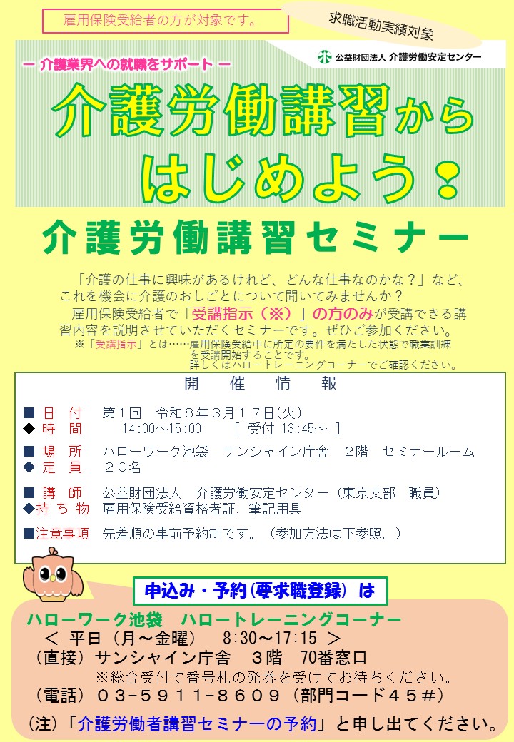 職業訓練(介護労働講習)セミナーの開催【事前予約制】