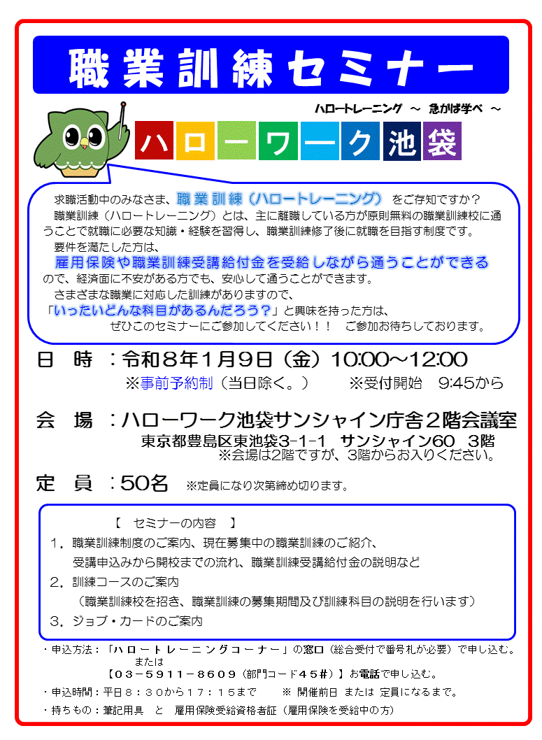 ハローワーク池袋 ハロートレーニングコーナーまで